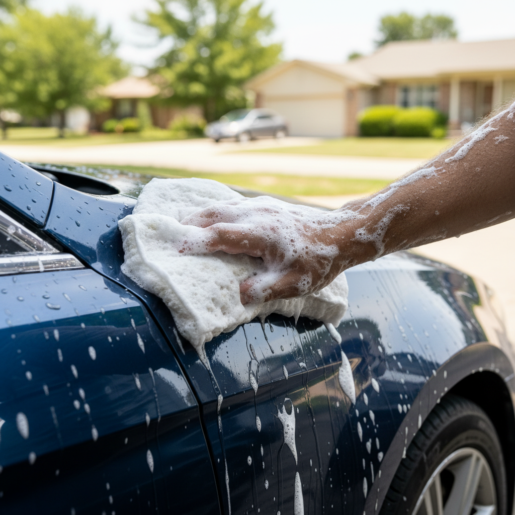 Handtvätten är kärnan i en professionell mobil biltvätt. Här rengörs fordonet metodiskt panel för panel med rätt teknik och utrustning.